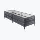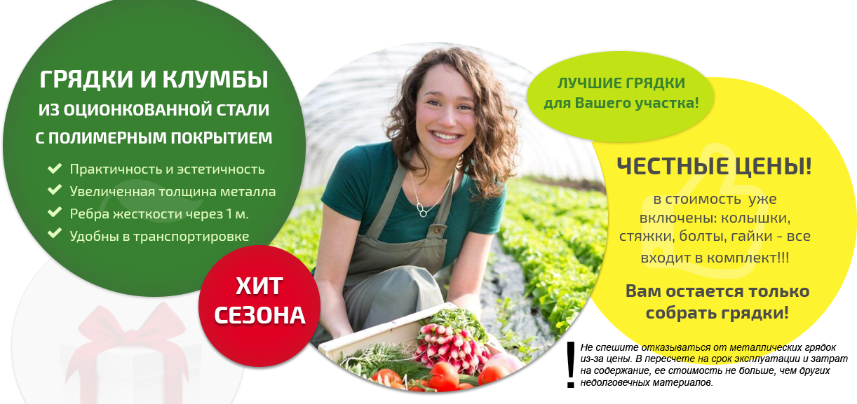 Грядка представляет прочную конструкцию из оцинкованных стальных листов 0,6мм с оцинкованными стальными ножками. При длине грядки более 2 метров идет автоматический раздел на секции для устойчивости конструкции,короба грядок не выкручивает и не ведет под массой земли!